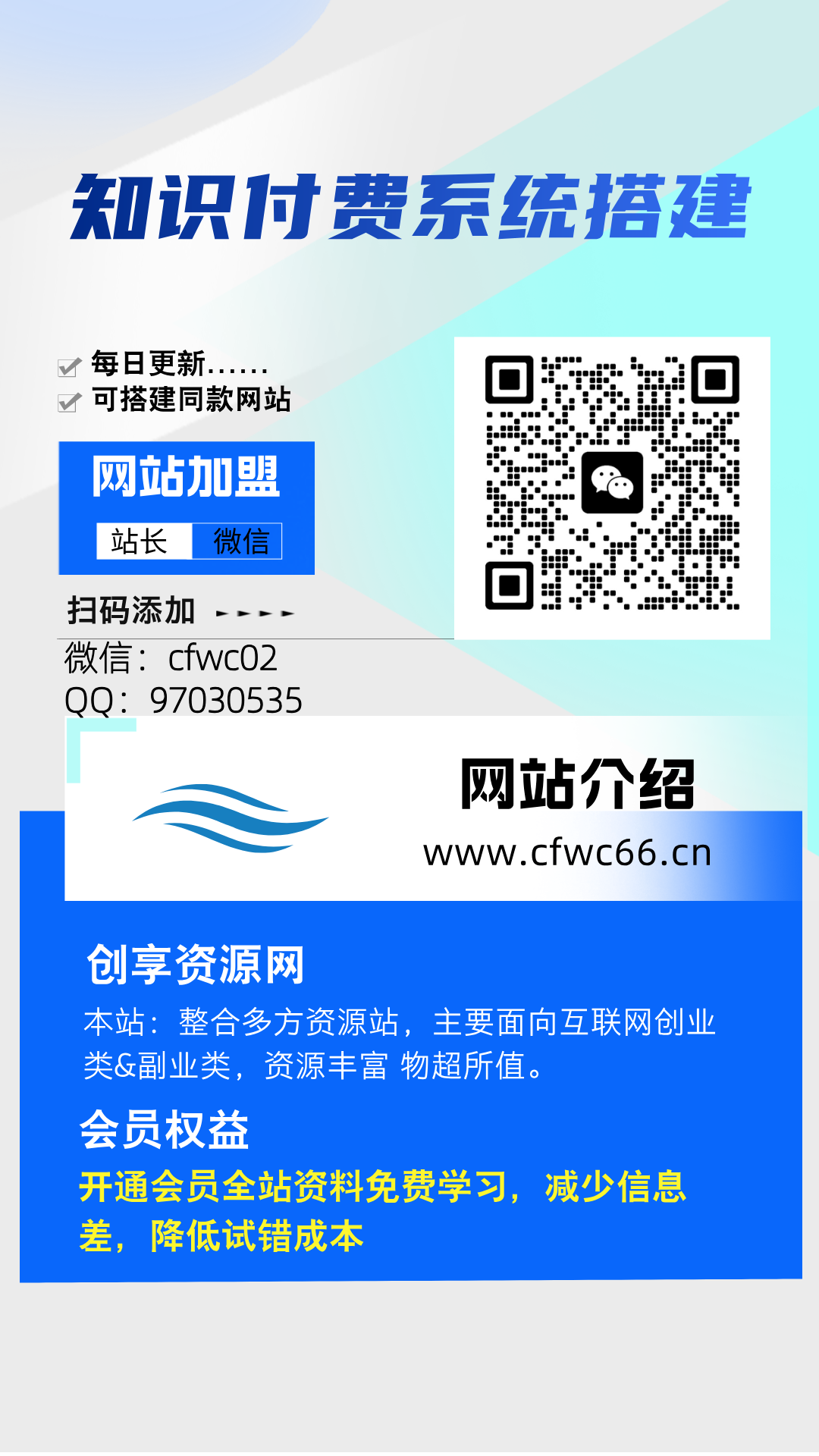 加盟XXX网创,加盟搭建同款知识付费资源网站,实现长期稳定被动收入~